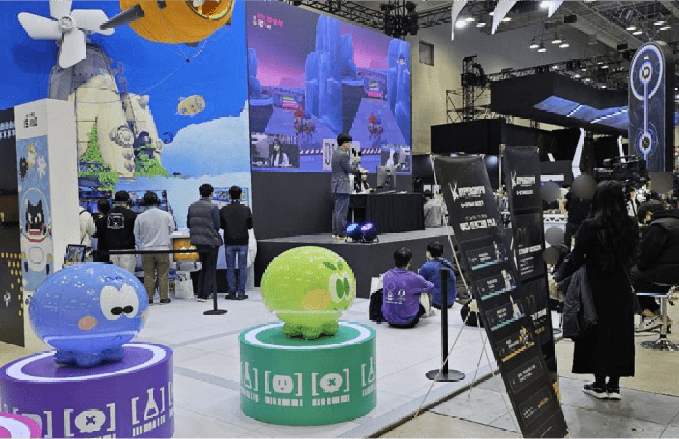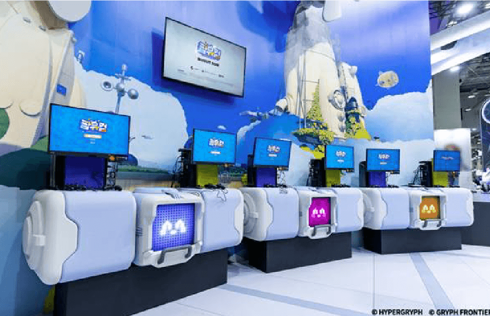 하이퍼그리프는 총 20부스 규모의 전시를 개최하여 멀티플레이 어드벤처 게임 <팝유컴>과 턴제 모바일 게임 <엑스 아스트리스> 등을 국내 유저들에게 최초로 공개했으며, 미니게임과 시연존, 포토존, 코스튬 쇼 등 다채로운 콘텐츠를 선보였다. 특히 멀티 어드벤처 게임 <팜유컴>과 RPG<엑스 아스트리스>의 시연대는 물론, 게임 세계관을 한 눈에 볼 수 있는 전시 현장과 다채로운 무대 행사를 마련해 국내 유저들에게 선보였다. <팜유컴>존은 특유의 아기자기함을 강조한 사격 미니게임으로 구성되어 있었고, <엑스 아스트리스>존에는 게임 만의 강점인 비주얼을 만끽할 수 있는 퍼즐 미니 게임 등의 코너도 마련해 방문객들에게 큰 즐거움을 선사했다.