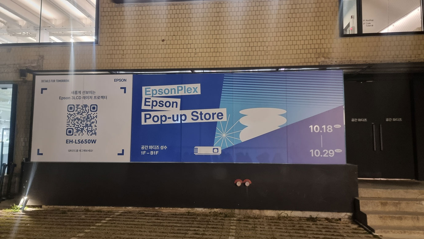 4K 레이저 프로젝터 'EH-LS650W' 출시를 기념한 프로모션존과 엡손의 홈·비즈니스 프로젝터를 활용해 다양한 테마의 콘텐츠를 즐길 수 있는 체험존으로 구성했다. 엡손은 팝업스토어를 통해 일반 고객을 비롯한 엔터테인먼트·문화예술·교육·기업 등 다양한 비즈니스에 종사하는 고객에게 자사의 기술력과 솔루션을 소개하고 경험할 수 있는 계기를 마련하였다. 먼저 팝업스토어 1층은 거실 및 응접실을 콘셉트로 기획된 공간으로, 신제품 'EH-LS650W'의 주요 기능을 살펴보고, 지하 1층에는 게임·홈시어터·뮤직·캠핑·미디어아트 등 다섯 가지 테마의 프로젝터 체험존이 마련되었다. 게임존에서는 체험형 스포츠를, 홈시어터존에서는 선명한 화질과 풍부한 색감으로 다양한 장르의 영화를 더욱 실감나게 즐길 수 있었으며, 뮤직존과 캠핑존, 인터랙티브 미디어아트존은 MZ세대의 취향을 고려해 감각적인 인증샷을 촬영·출력할 수 있도록 이색 포토존을 마련하는 등 방문객들에게 프로젝터를 활용한 다채로운 경험을 선사했다.