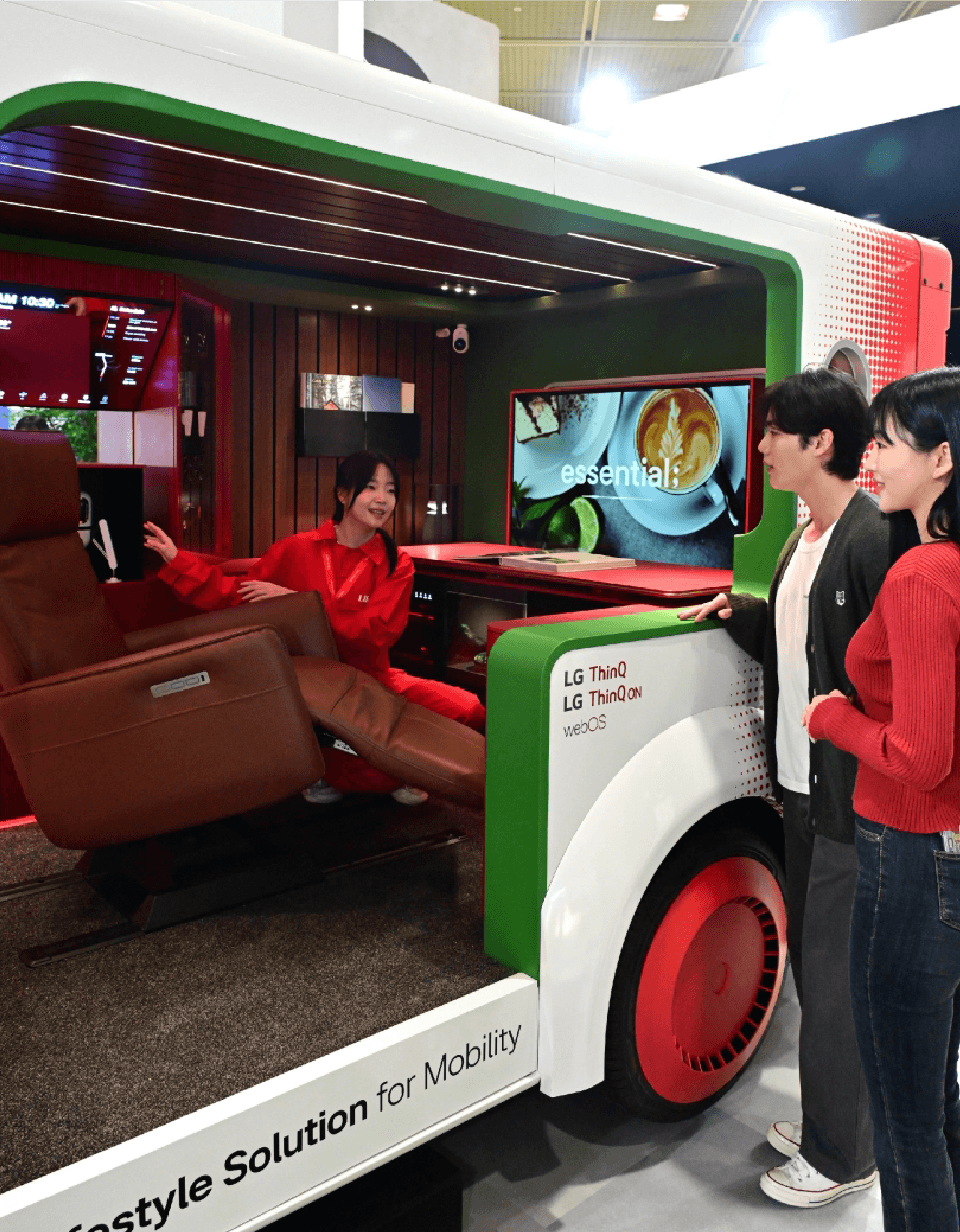 24일 서울 강남구 코엑스에서 개막한 국내 최대 정보통신기술 전시회 LG전자의 이번 전시는 ‘공간,미래,연결하다’ 를 슬로건으로 제품과 기술을 통해 모든 삶이 연결되는 미래를 표현했다. 전시관 중앙의 ‘LG AI 스퀘어’를 중심으로 LG AI홈, 스탠바이미2, 웹OS 시어터 등 다양한 생활 공간을 AI 기술로 구성했다. 차량과 가전이 결합된 미래형 콘셉트카 ‘슈필라움’과, 스마트모니터 ‘LG 스윙’, 텀블러 세척기 ‘마이컵’ 등 신제품도 함께 전시했다. 이동형 AI홈 허브는 감정 기반 책 읽기 및 그림 스토리 생성 등 공감지능 기반 AI의 일상 적용 가능성을 보여줬다. 광장 중심에는 AI가전과 IOT(사물인터넷) 기기를 차량과 결합한 콘셉트카 슈필라움이 전시됐다. 고객의 라이프스타일에 따라 가전과 가구를 조합할 수 있다는 점이 특징이다.